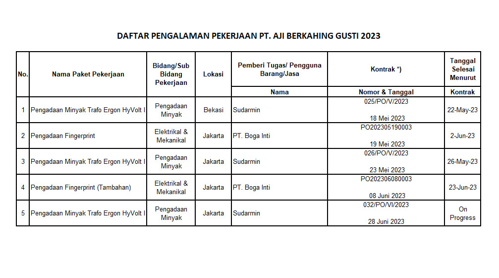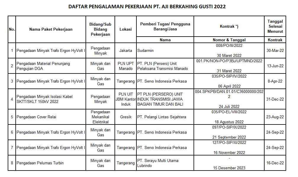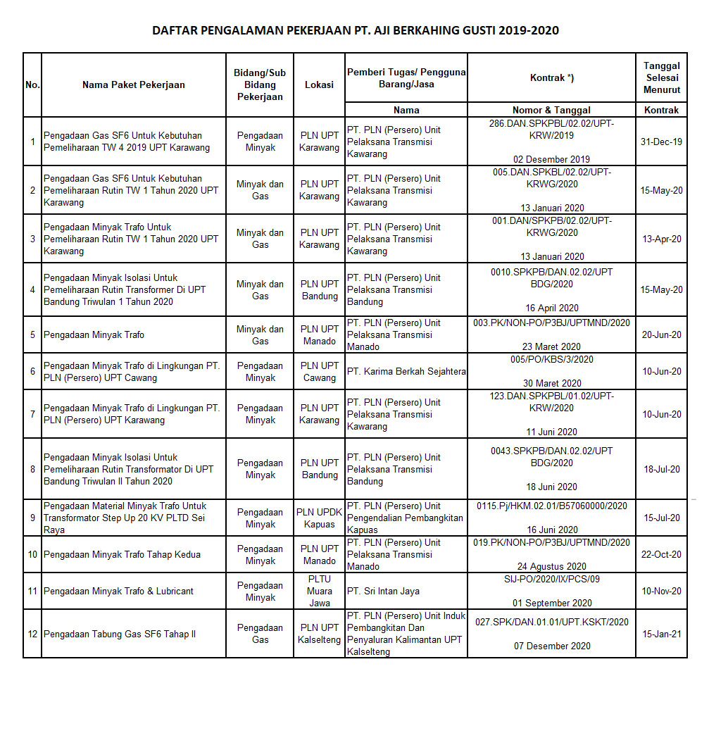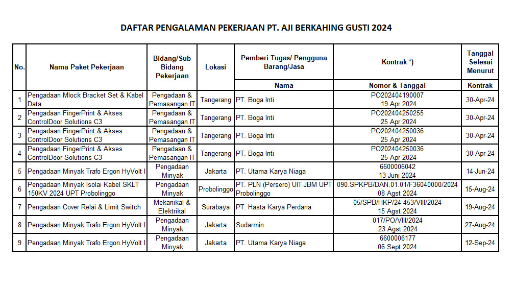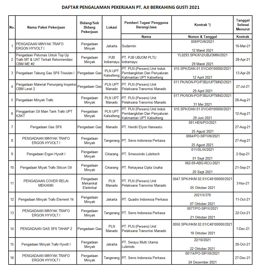 PT. ABG berpengalaman dibidang energi, elektrikal mekanikal dan IT, yang dapat diandalkan dengan mitra nasional maupun multinasional. Berikut adalah daftar pengalaman kerja PT. ABG :